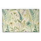 A vintage-style botanical pattern rendered in delicate watercolor. The illustration features a dense arrangement of various wildflowers, herbs, and assorted green foliage on a textured, parchment-like background, creating a soft, naturalistic design with an antique feel.