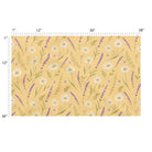 A seamless floral pattern in a watercolor style, featuring white daisies and purple lavender sprigs scattered across a warm, textured yellow background. The design creates a gentle and charming botanical feel.