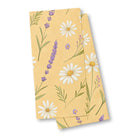 A seamless floral pattern in a watercolor style, featuring white daisies and purple lavender sprigs scattered across a warm, textured yellow background. The design creates a gentle and charming botanical feel.
