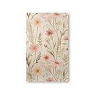 A vintage-style botanical pattern of delicate watercolor wildflowers. The soft pink blossoms and earthy green foliage are set against a light, textured background, creating a rustic and gentle aesthetic.