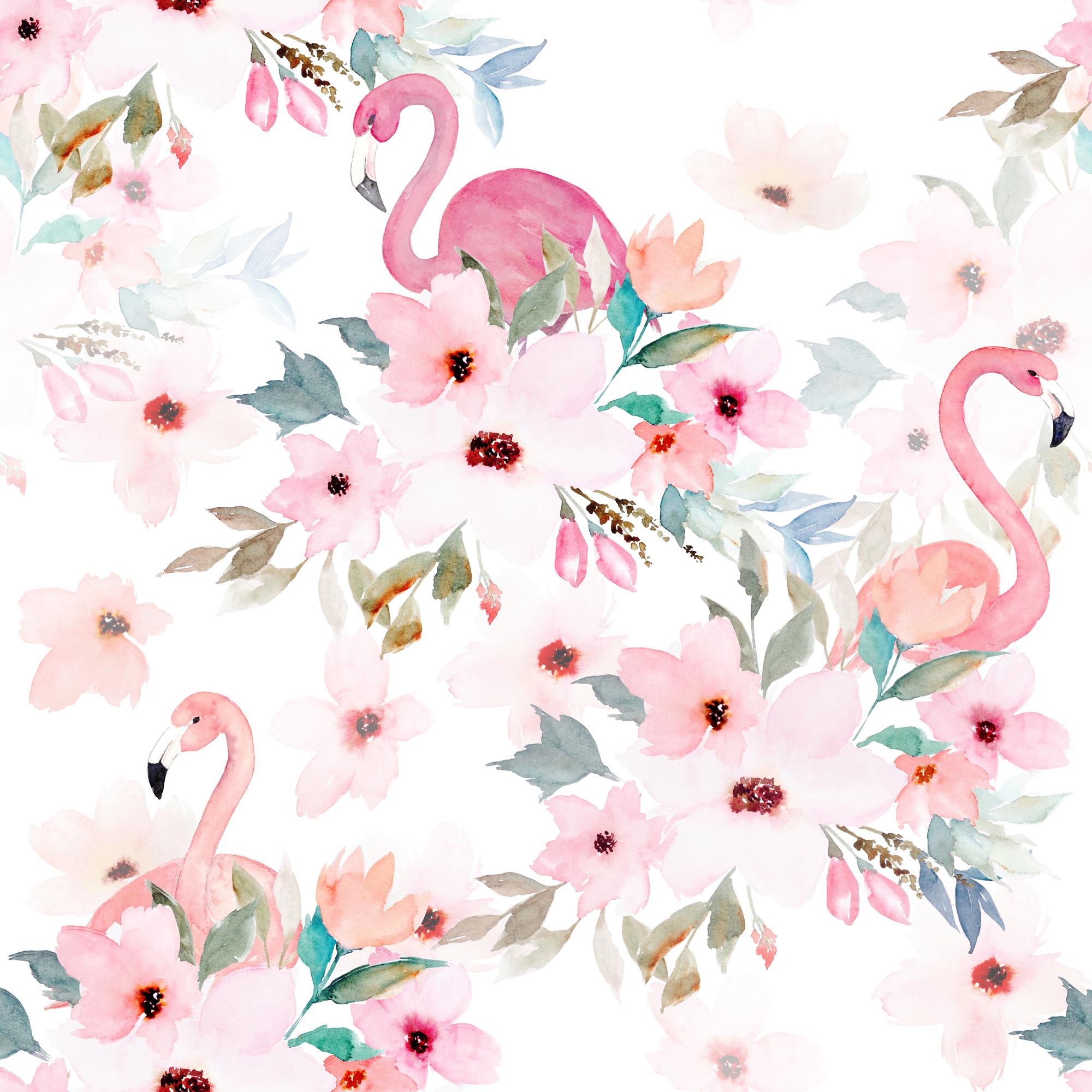 Wallpaper Flamingo Floral - Wall Covering - Peel and Stick Wallmark Canvas