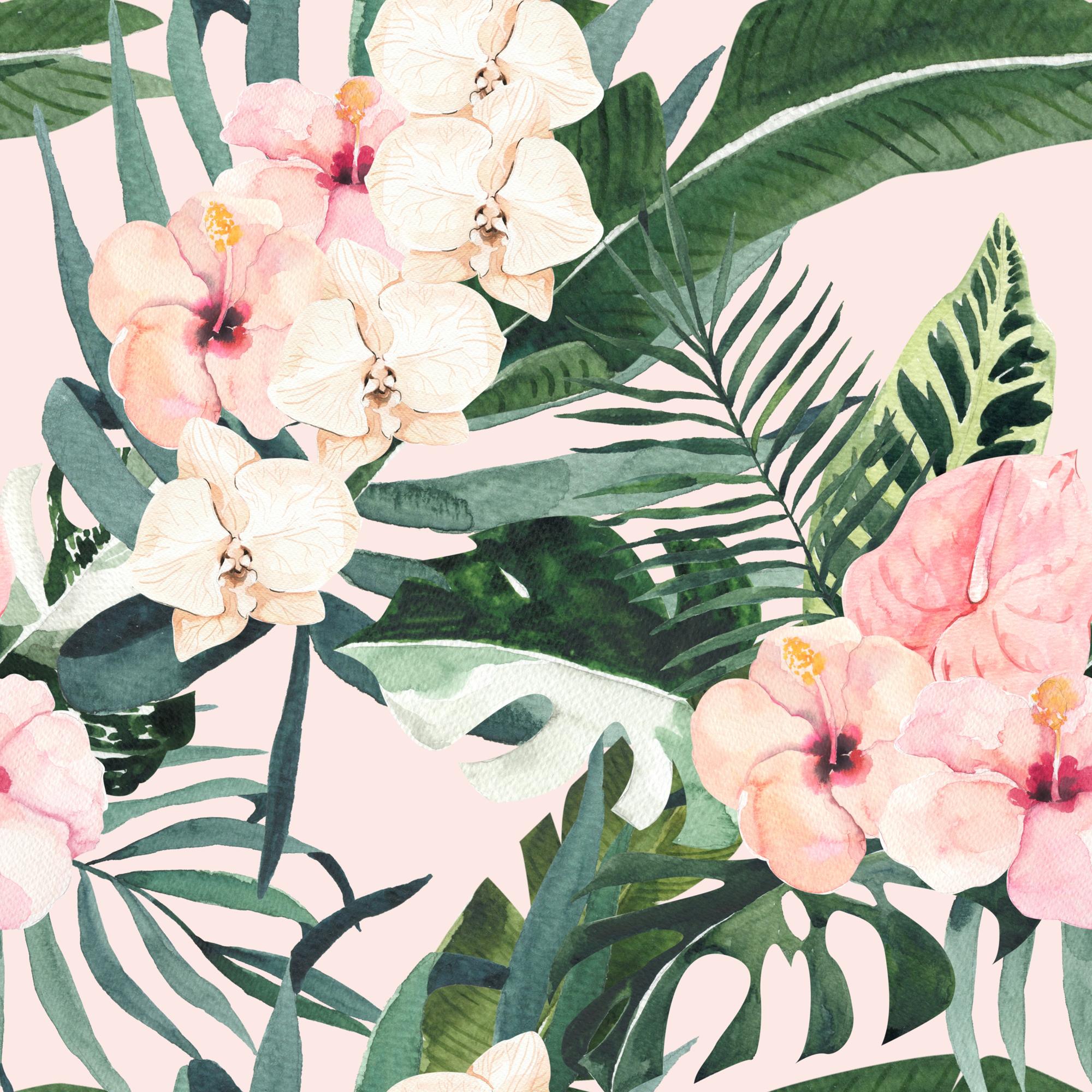 Wallpaper Tropical Floral - Wall Covering - Peel and Stick Wallmark Canvas